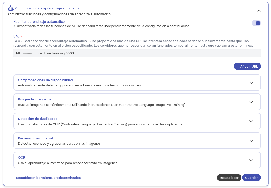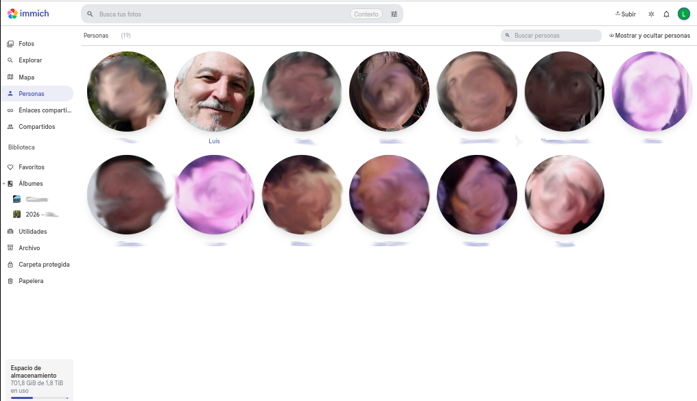 Enhorabuena, ya tienes totalmente configurado el procesamiento de caras en Immich.